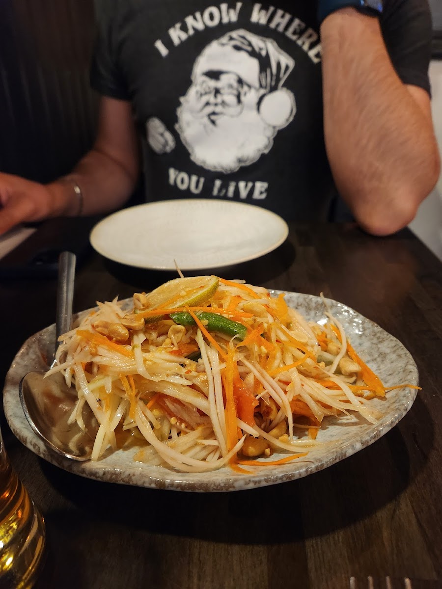 One of the standout dishes on the menu is the Pad Thai. Whether you're a fan of noodles or just love bold flavors, this dish will hit all the right notes. The combination of stir-fried rice noodles, eggs, tofu, shrimp, and peanuts, all tossed in a tangy tamarind sauce, makes it an irresistible choice. Another must-try is the Som Tum, a refreshing green papaya salad that delivers the perfect mix of crunch, spice, and a bit of sweetness. It’s the kind of dish that wakes up your taste buds, leaving you craving more.